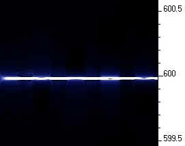 An audio file of length 5 minutes was prepared in WAV format using stereo 44.1kHz sampling rate at 16-bits resolution. This is the standard format for recording to an audio CD. The file was filled with a 600Hz tone generated by functional means within GoldWave. The file was saved in WAV format (50Mbyte file size) and at the most severe mp3 compression level available in GoldWave (32 kbps - giving a file size of just over 1MByte - a 50:1 compression ratio).