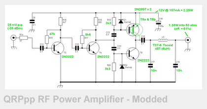 Initially I could only get 500mW at a 12V power supply level out of the K0LR/G3XBM design, unlike the approximately 700mW reported by both Kyle and Roger.